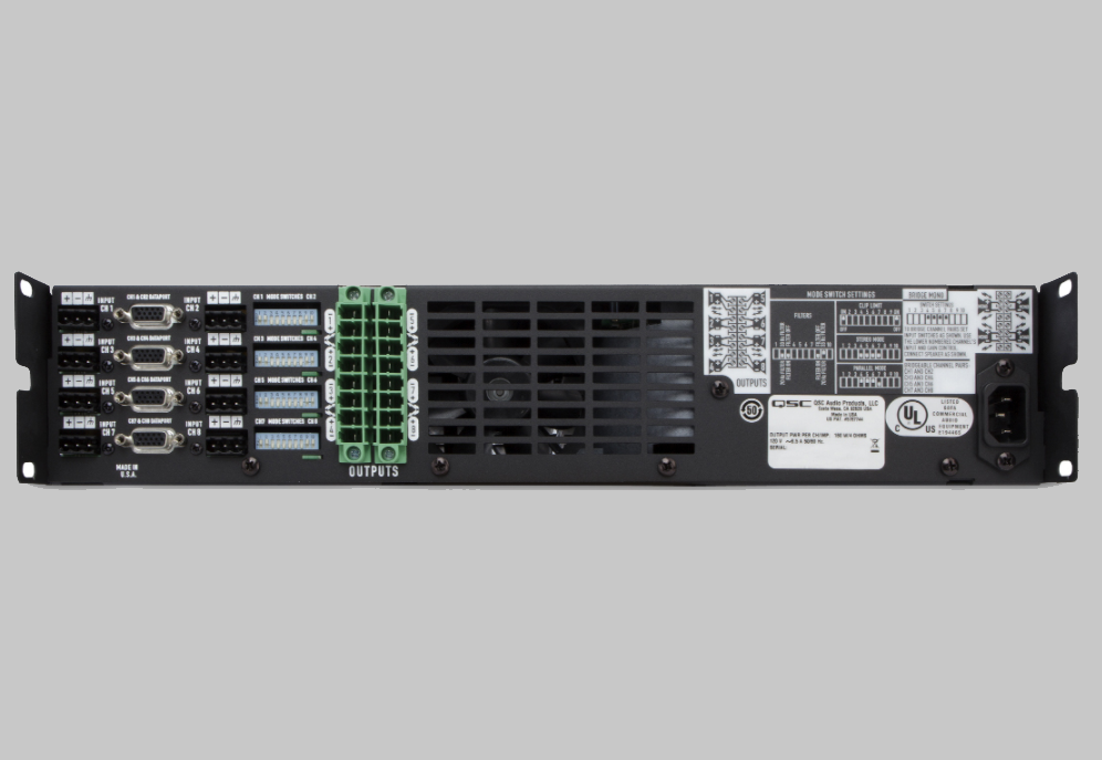 四個(gè)HD15數(shù)據(jù)端口(每個(gè)通道一個(gè))用于Q-SYS聯(lián)網(wǎng)控制和監(jiān)視